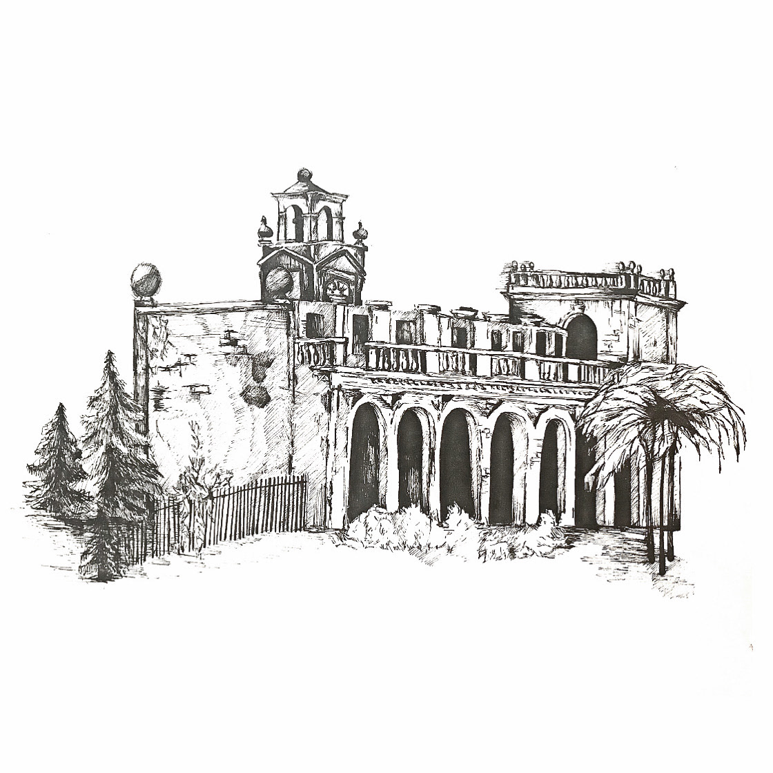This piece is a drawing of the historic ballroom at Trentham Gardens. I love to focus on the intricate details of these historic buildings, trying to represent the permanence of brick and stone with the pen.
